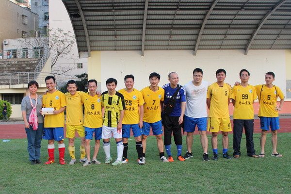 参赛队伍来自学校基础工会、机关工会、第一附属医院工会和第二附属医院工会组织的4支职工足球代表队,比赛采取淘汰赛赛制。经过2个比赛日激烈的角逐,在第二轮比赛中第一附属医院工会代表队4:2战胜基础工会代表队获得冠军,基础工会代表队获得亚军;第二附属医院工会代表队3:0战胜机关工会代表队获得季军,机关工会获得体育道德风尚奖。学校工会专职副主席陈奋、基础工会主席郝美娟、基础医学与生命科学学院党总支书记周代锋和常务副院长李孟森分别为获奖代表队颁奖。至此,2016年首届 职工男子足球联赛完美收官。