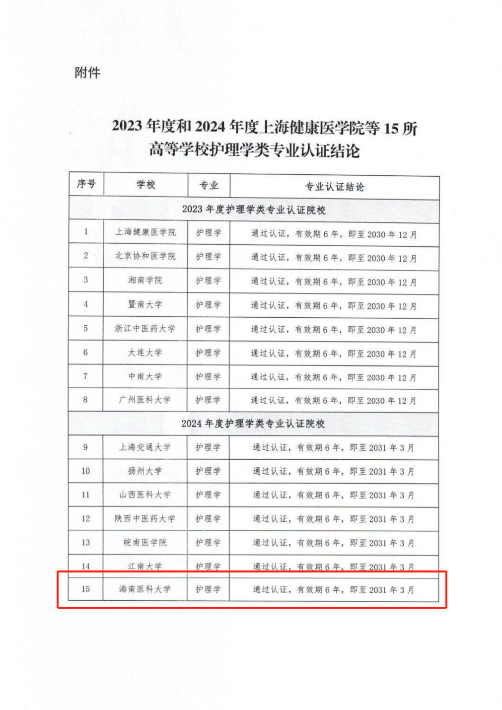护理学专业成功通过教育部专业认证,是全校师生共同努力的结果,也是对我校办学水平和人才培养质量的高度认可。学校将以此次认证为契机,认真研究落实专家组的反馈意见,持续深化教育教学改革,进一步加强护理学专业内涵建设,全面提高人才培养质量,努力将护理学专业打造成为国内一流、具有热带特色和国际影响力的品牌专业,为“健康海南”“健康中国”建设培养更多高素质的护理专业人才,为医疗卫生事业的发展贡献力量。