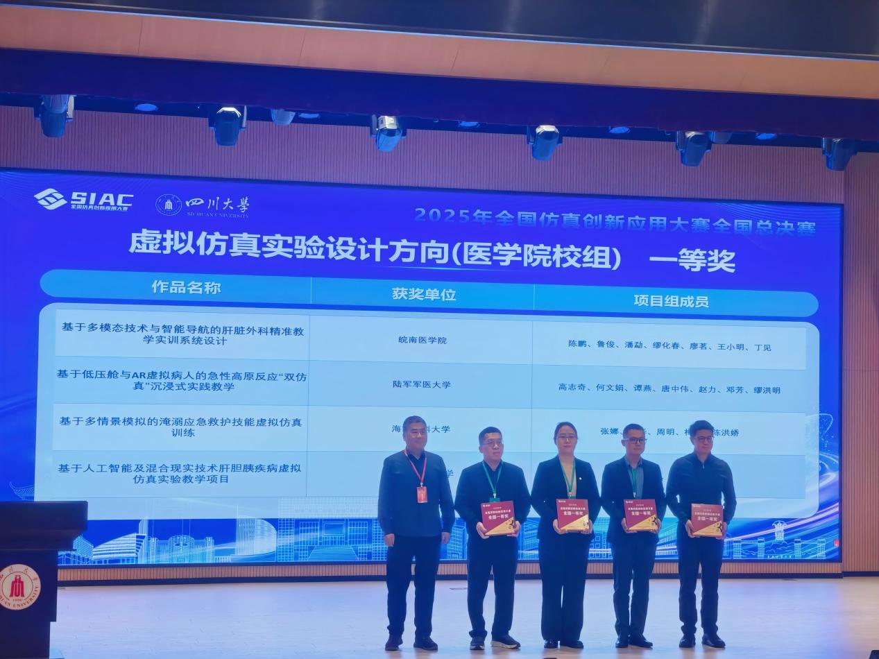 近日,在四川大学举办的2025年全国仿真创新应用大赛上,海南医科大学护理学院张娜、张华、周明、梅媛、陈洪娇五位教师的参赛项目《基于多情景模拟的淹溺应急救护技能虚拟仿真训练》获虚拟仿真实验设计方向(医学院校组)全国一等奖。