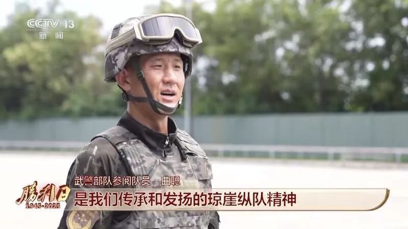 阅兵中也有“海南元素”,武警部队方队中,有与华南游击队血脉相承的单位抽组。华南游击队琼崖纵队“英勇善战连”第35任连长曲聪在阅兵前两天的采访中说:“孤岛奋战,艰苦卓绝,23年红旗不倒,是我们传承和发扬的琼崖纵队精神,我作为琼崖纵队英勇善战连连长,我始终坚信,我自己是肩负着使命和任务,要把琼崖纵队精神传承好,要把此次阅兵任务完成好。”