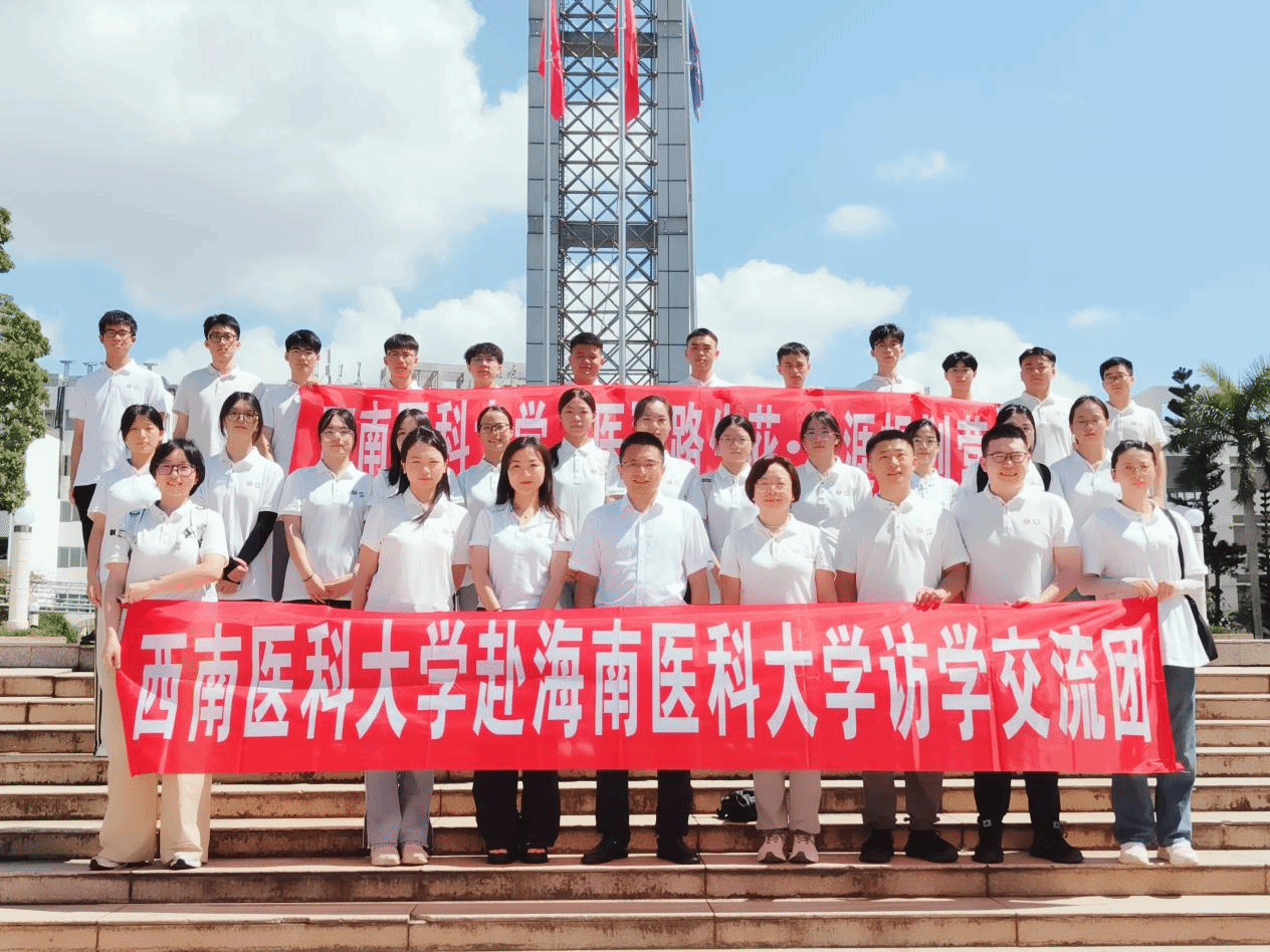 8月13日,西南医科大学访学交流团一行31人到访我校生命科学与医学技术学院,双方围绕学科建设、学院发展等主题开展校际交流活动。交流团先后走进学术交流厅、教学实验中心及国家卫生健康委热带病防治重点实验室,通过实地走访与深入研讨,为两校医学教育合作注入新活力。