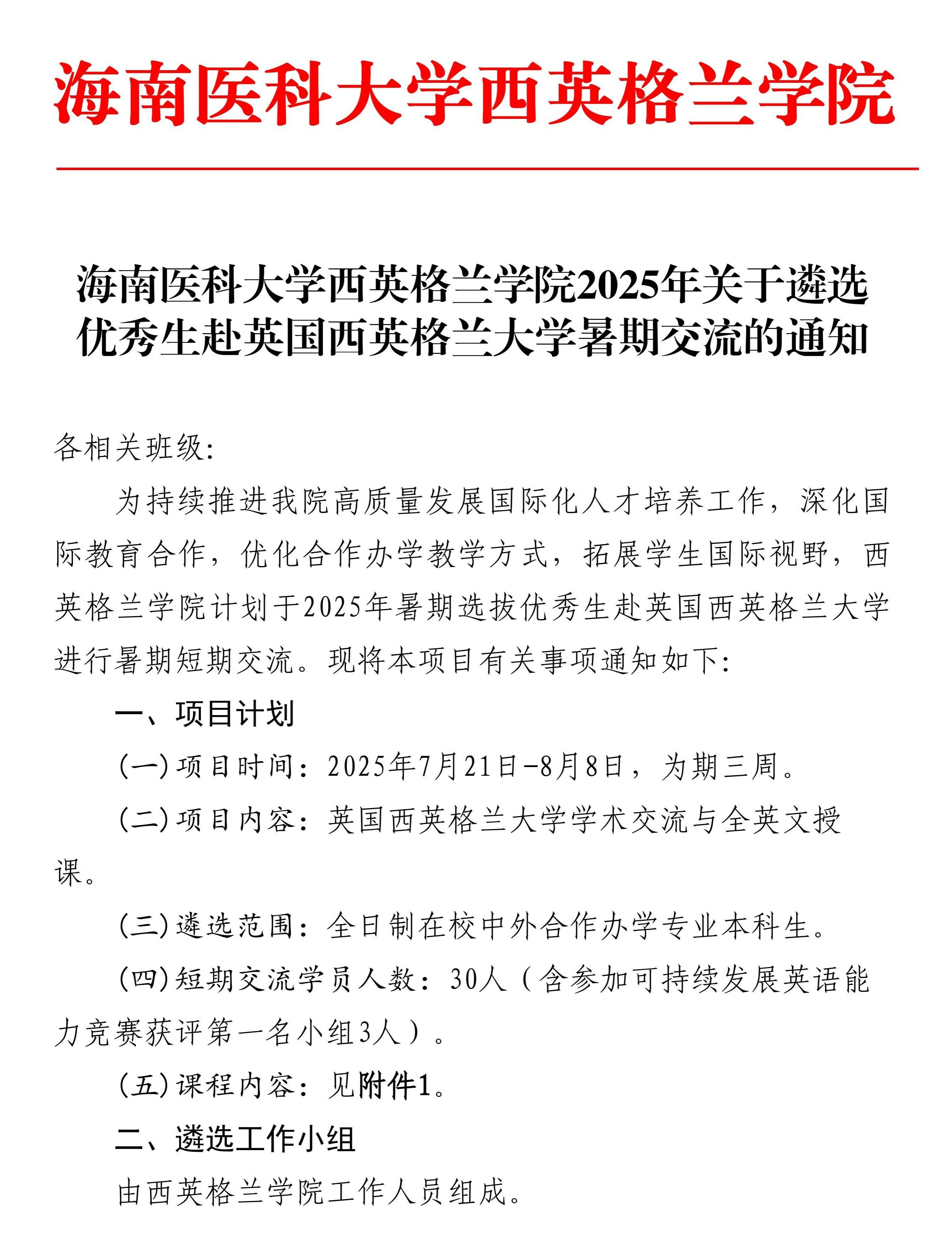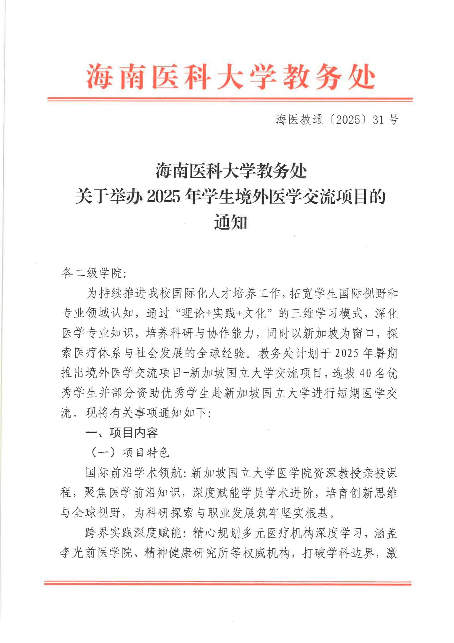 关于举办2024年学生境外医学交流项目的通知各二级学院:为持续推进我校国际化人才培养工作,拓宽学生国际视野和专业领域认知,学习先进的医疗服务、现代医院...