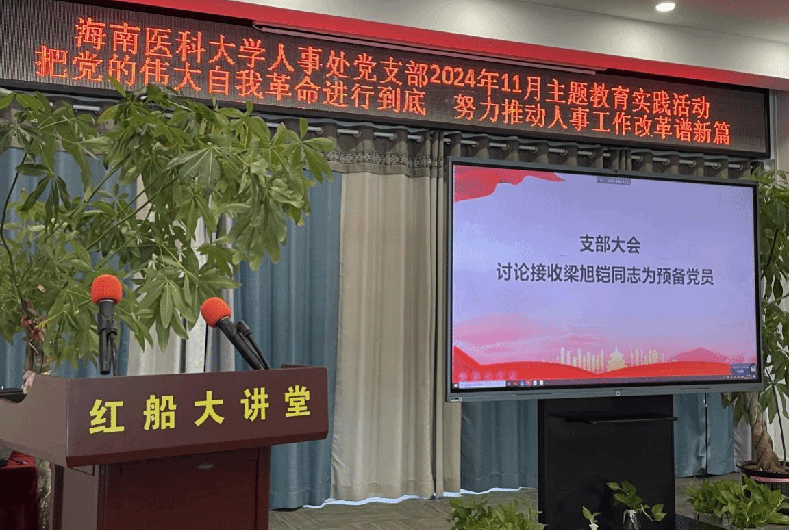 最后,支部大会讨论接收梁旭铠同志为预备党员。