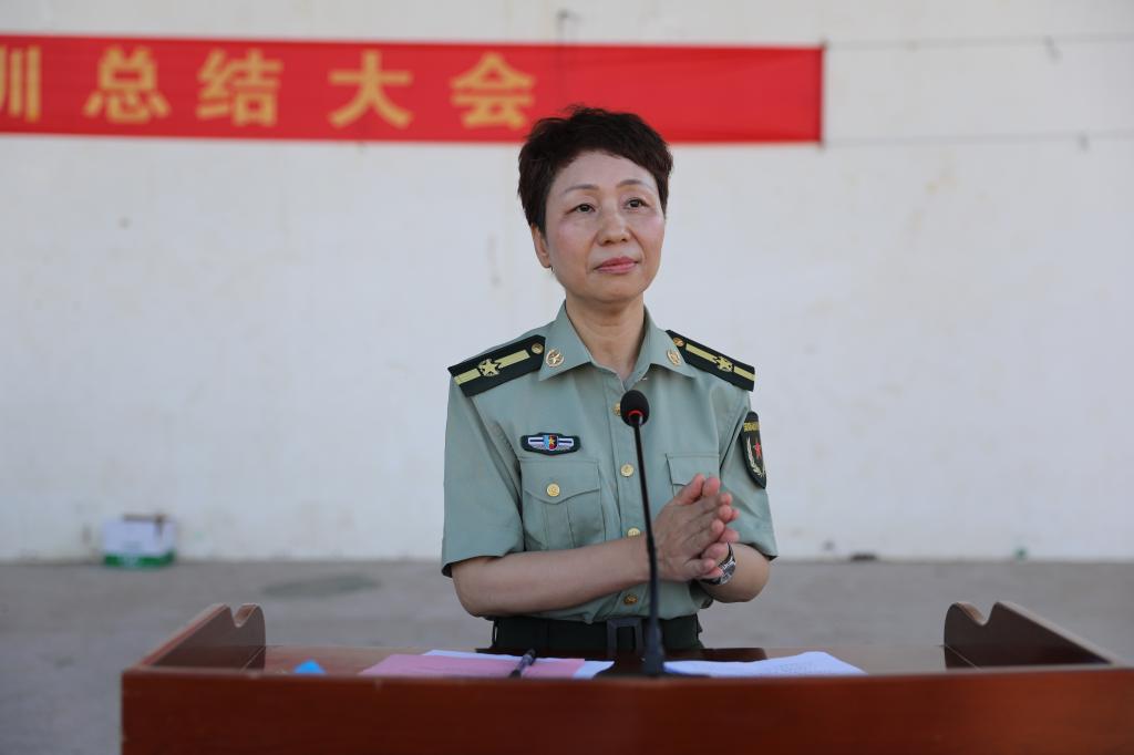 张彩虹副校长作总结讲话。她充分肯定了军训成果,并着重强调本次军训的四大特点,一是领导重视、分工明确;二是严格实训、保质保量;三是多措并举、保障有力;四是内容丰富、成效明显。她希望,同学们在今后学习生涯中继续发扬在军训中吃苦耐劳、超越自我、服从命令的精神,做热爱集体、积极向上,无愧于祖国,无愧于人民,无愧于时代的新青年。
