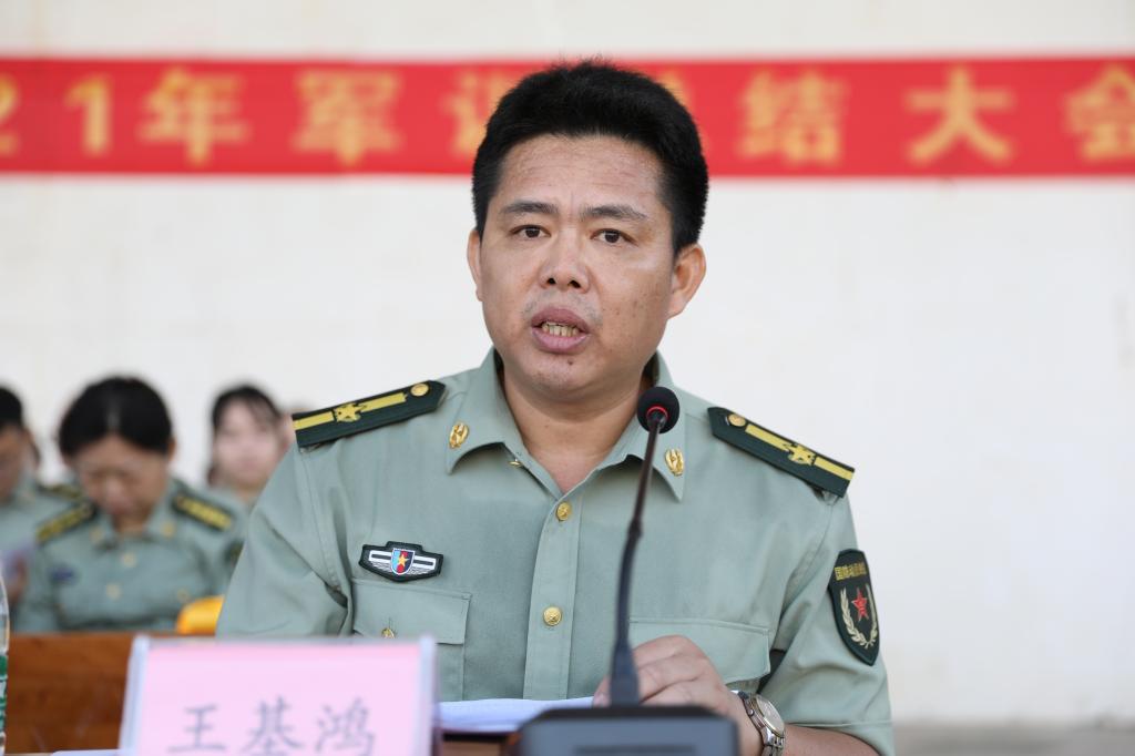 会上, 王基鸿大队长宣读表彰决定, 对优秀教官、优秀辅导员、优秀内务宿舍等进行嘉奖。他高度赞扬了同学们刻苦训练,发扬“流汗流血不流泪、掉皮掉肉不掉队”的优良精神, 希望同学们继续将这种艰苦奋斗、勇敢顽强作风发扬到今后学习和工作中。