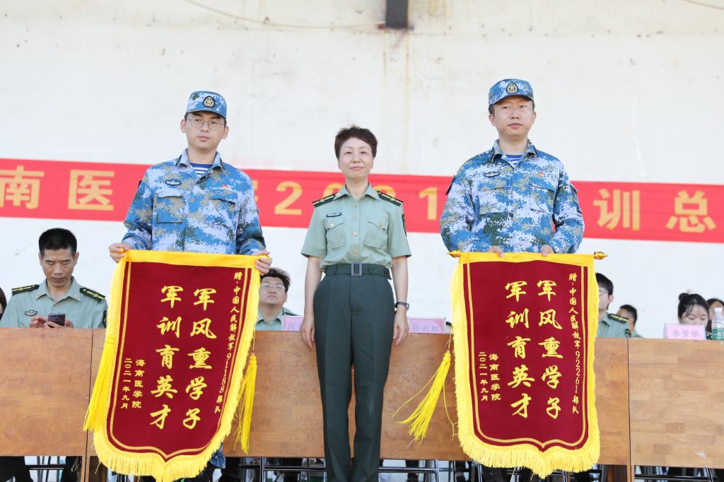 最后,张彩虹副校长代表学校向帮训部队赠送锦旗。到此,新生军训总结大会在热烈的掌声中圆满结束。