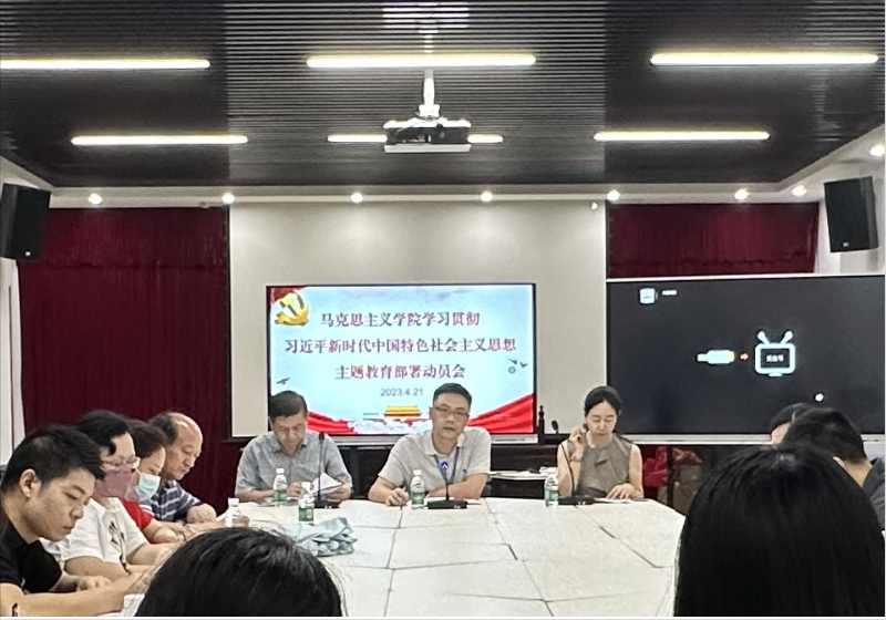 4月21日上午9点,马克思主义学院在学术活动中心召开学习贯彻习近平新时代中国特色社会主义思想主题教育部署动员会, 党委委员、马克思主义学院党总支书记雷浩泽、马克思主义学院副院长邹庆华和学院全体教职工参加了会议,会议由雷浩泽主持。