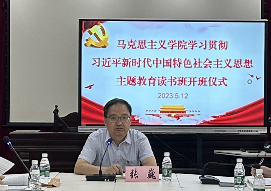 5月12日下午,马克思主义学院在学院学术活动中心举办学习贯彻习近平新时代中国特色社会主义思想主题教育读书班开班式。开班式由