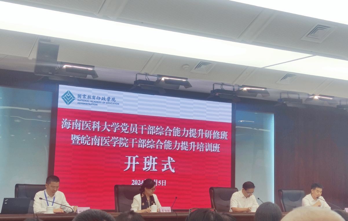 8月4日至10日,海南医科大学党员干部综合能力提升研修班在国家教育行政学院举办,学校党委副书记张巍、学校党委组织部部长谢毅强参加了研修班的部分活动,来自全校各基层党组织的97名党务工作者参加了研修,我院党总支副书记黎同柏、纲要与形策党支部书记蒋红艳、人文党支部书记吕倜然和马基原理党支部组织宣传委员焦剑等四人参加了本次研修。