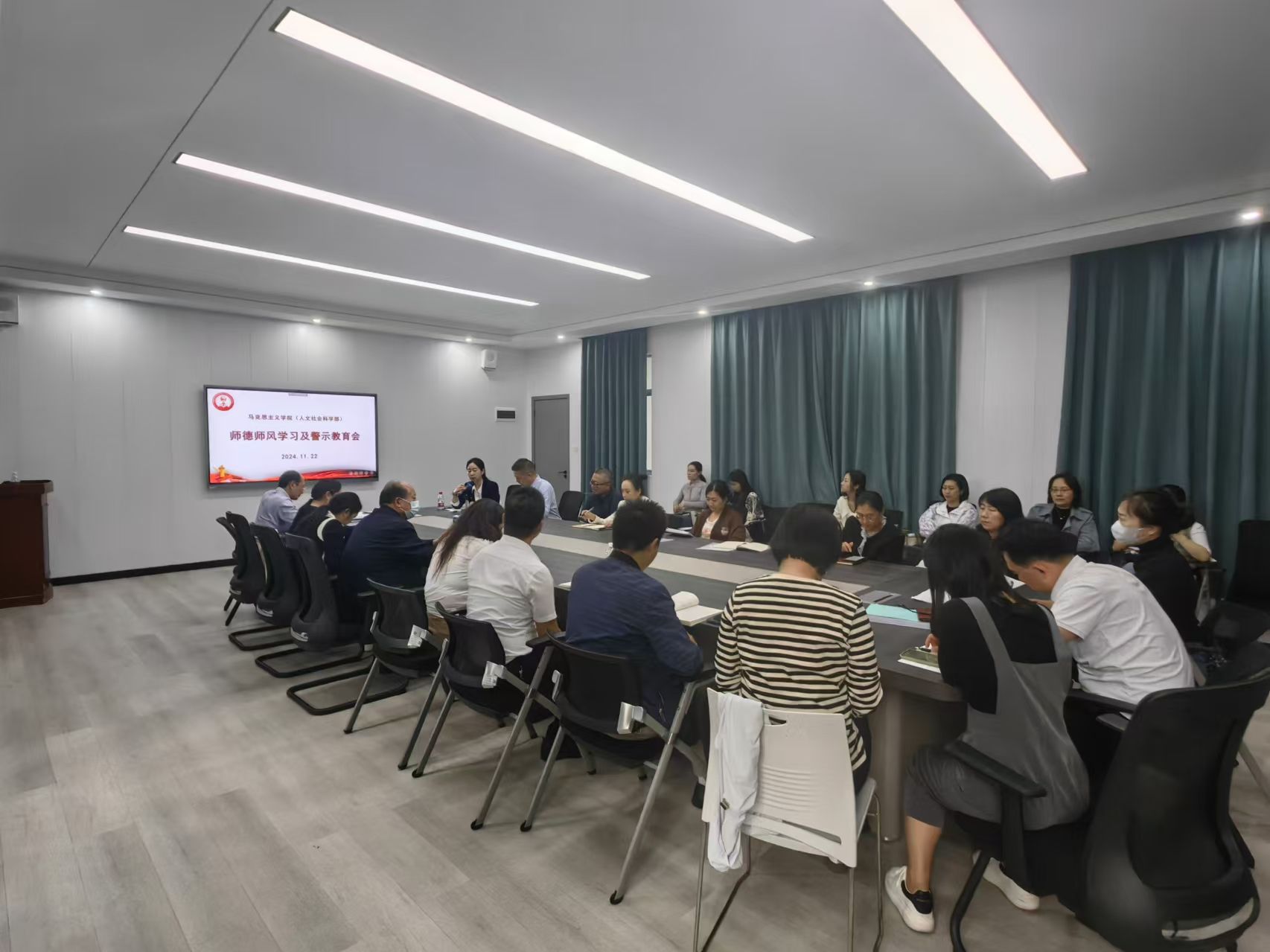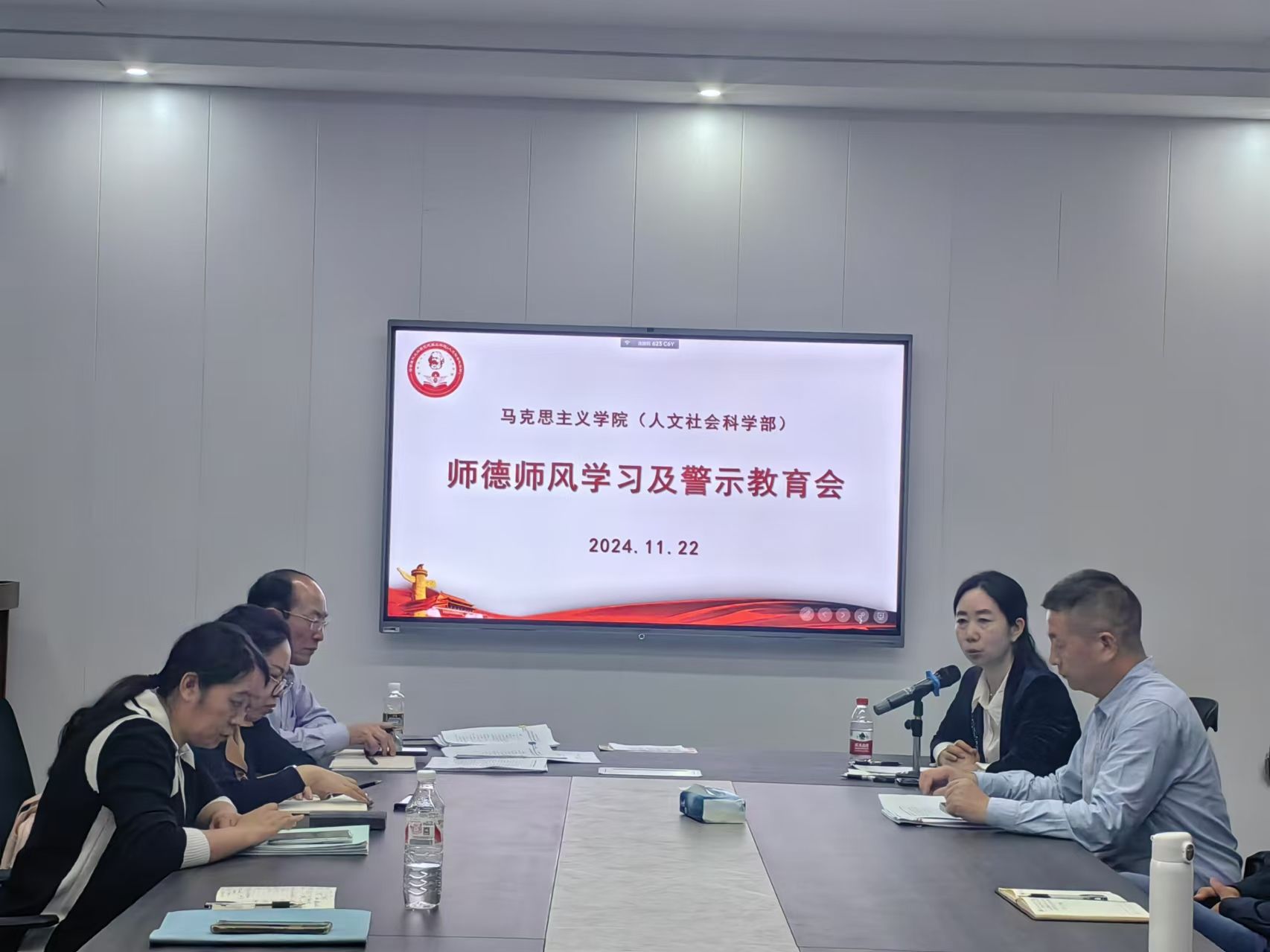 11月22日下午,马克思主义学院(人文社会科学部)在学校大学生中心一楼会议室,召开师德师风学习及警示教育大会,会议由学院党总支书记王身坚主持,副院长邹庆华和学院全体教职工参加了会议。
