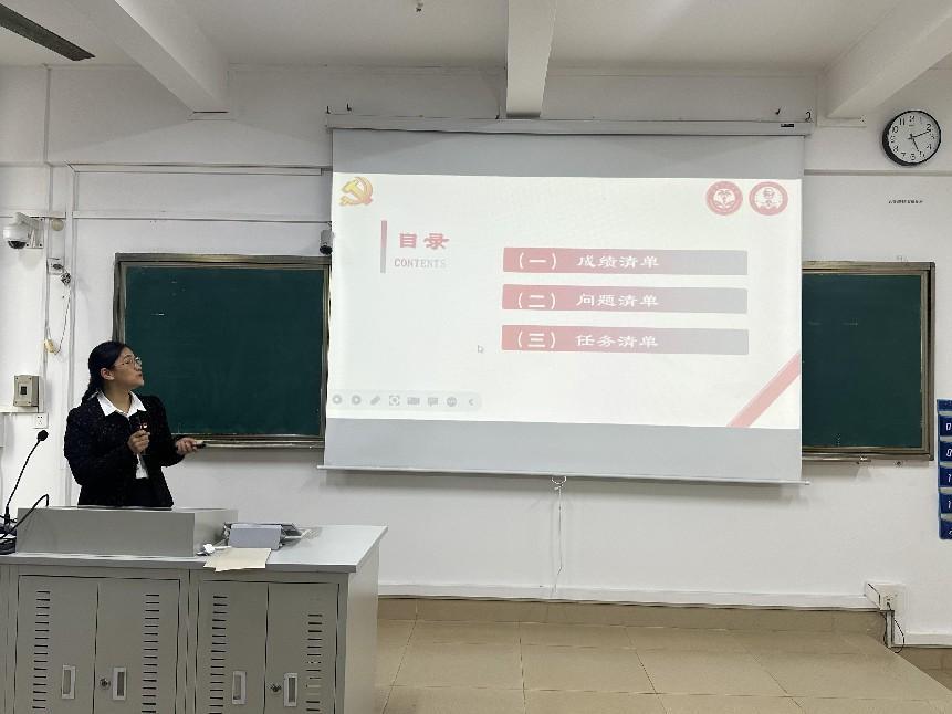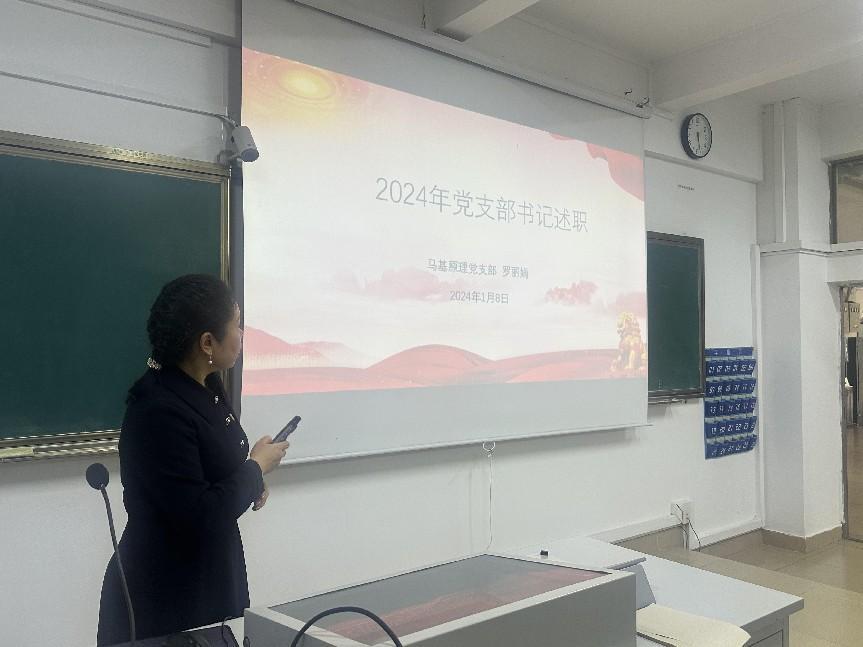 在考核会上,黎同柏首先对《马克思主义学院(人文社会科学部)2024年度党组织书记抓基层党建工作述职评议考核实施方案》作了说明,并对现场述职提出了要求。随后,中国化与德法党支部书记范琼、纲要与形策党支部书记蒋红艳、马基原理党支部书记罗丽娟和人文党支部书记吕倜然先后上台,对2024年抓党建工作情况做了现场述职。