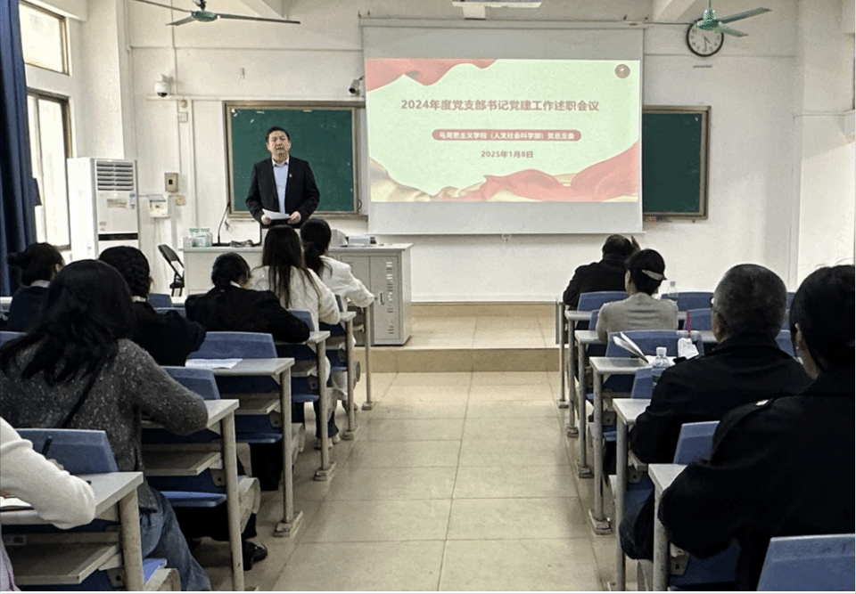 1月8日下午,学院党总支在崇学楼105教室,召开党支部书记抓基层党建工作述职评议考核会。学院党总支副书记黎同柏主持会议,党总支书记王身坚、党总支委员、副院长邹庆华、党政办公室负责人刘欢和学院各党支部全体支部委员参加了会议。