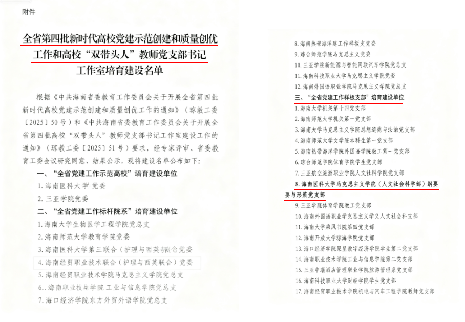 近日,中共海南省委教育工委公布全省第四批新时代高校党建示范创建和高校“双带头人”教师党支部书记工作室培育建设名单,我院纲要与形策党支部凭借扎实的党建根基、鲜明的医学思政特色与突出的育人成效,成功入选“全省党建工作样板支部”培育建设单位。这是我院在基层党建工作领域取得的重要突破,不仅为学院党建工作高质量发展注入强劲动力,更标志着学校思政课教师党支部建设迈入新阶段。