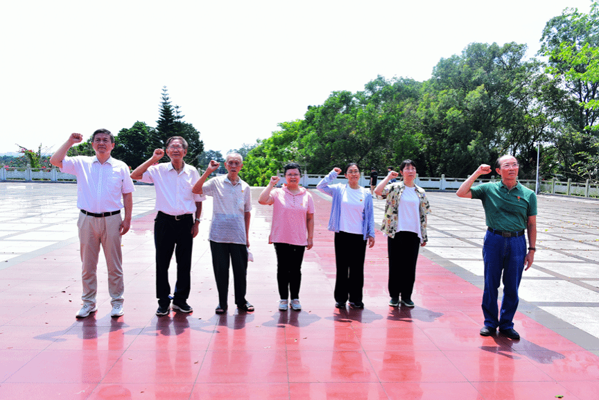 考察组在六连岭革命英雄纪念碑前重温入党誓词