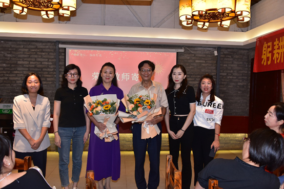 在慰问退休教师环节,新教师代表向郭健、陈洪波两位马院退休教师敬献了鲜花和礼品,两位老前辈向全体教师分享了海医马院的历史,以及各自几十年从事思想政治理论课教学工作的经验,并向新教师发表了深情的寄语。