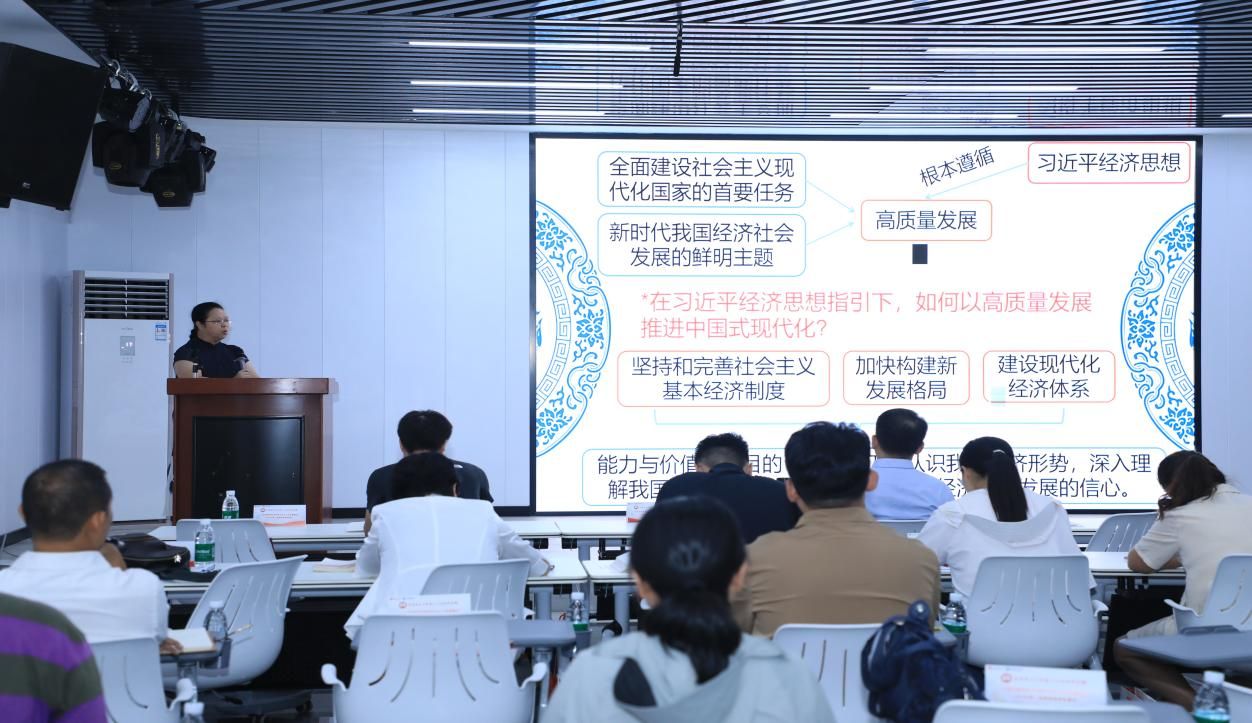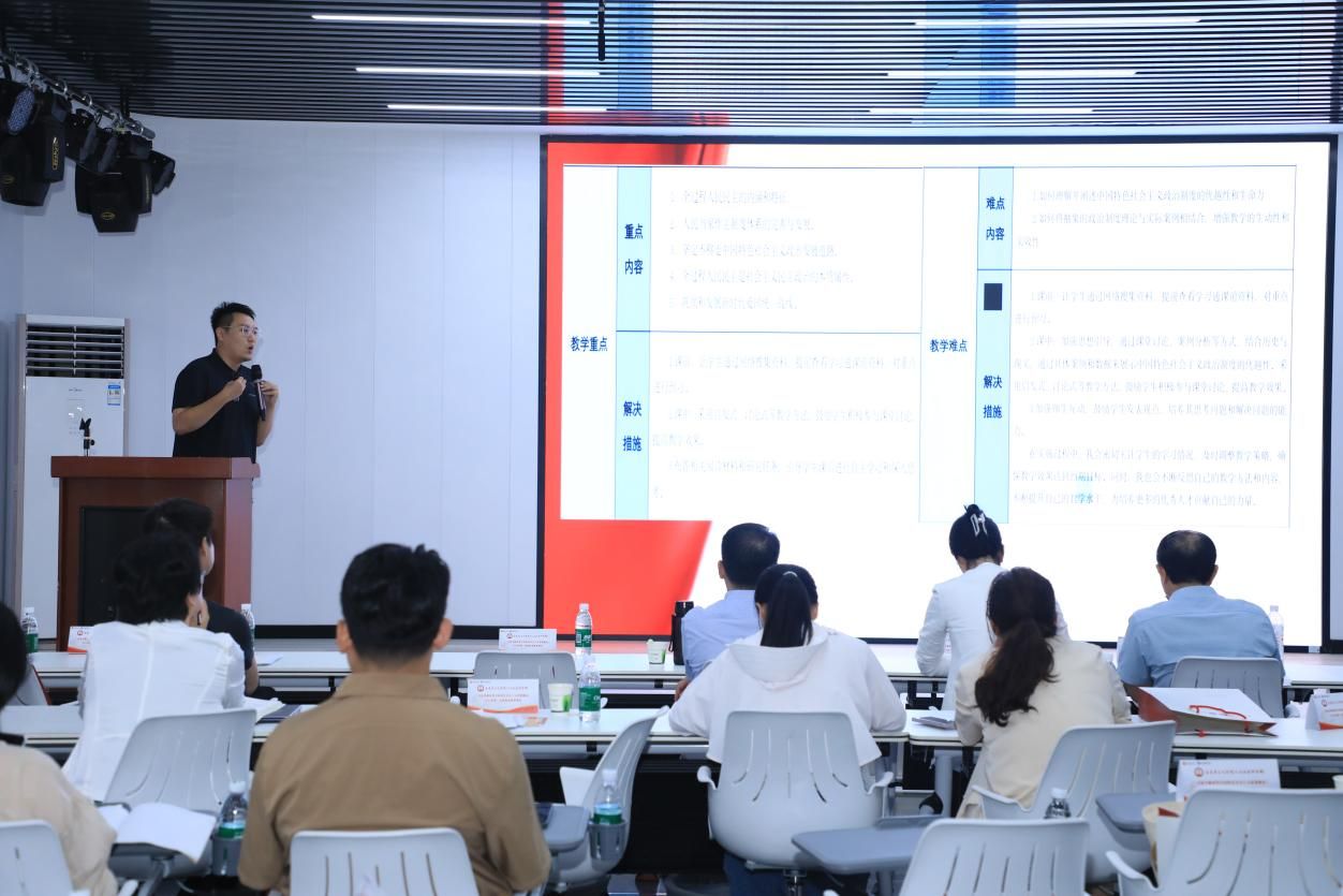 会上,由海南医科大学邓少柳老师围绕第六章“推动高质量发展”内容进行精彩说课。从章节的逻辑框架分析到教学重难点分析、教学方法使用、教学案例选择、教学学时安排等方面,邓老师给予了生动而全面的说明,并分享了如何将党的二十届三中全会精神融入本章内容的经验和方法。