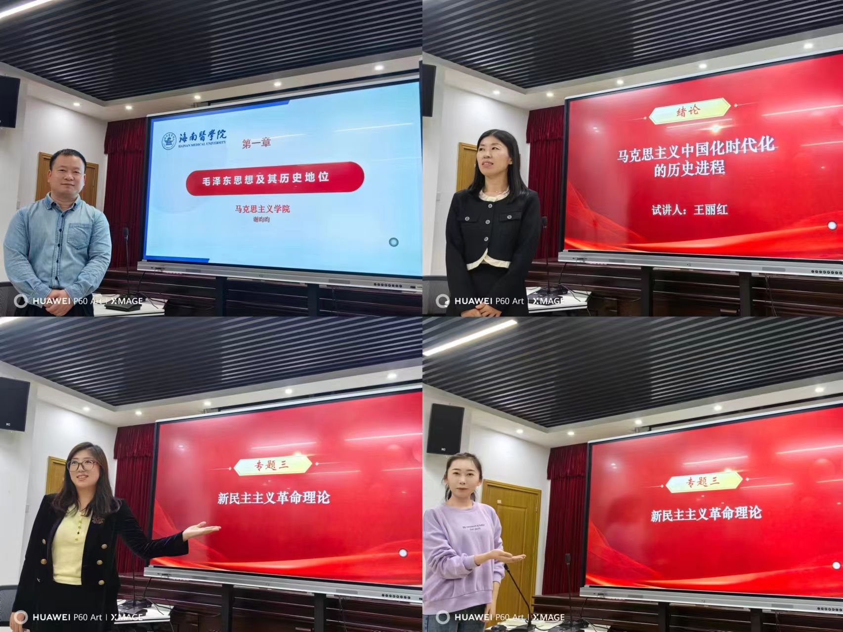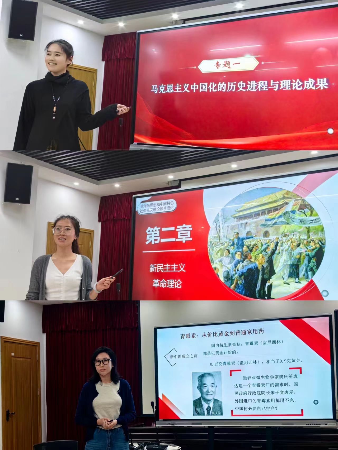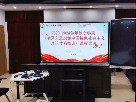 在集中任课教师进行新教材培训的基础上,2023年12月5日,《毛泽东思想和中国特色社会主义理论体系概论》课程课题组在综合楼一楼学术活动中心进行集体备课,内容为观摩罗崇菲、刘欢、张斯琪、王丽红、谢昀昀、田雨、罗夏君七位教师试讲。