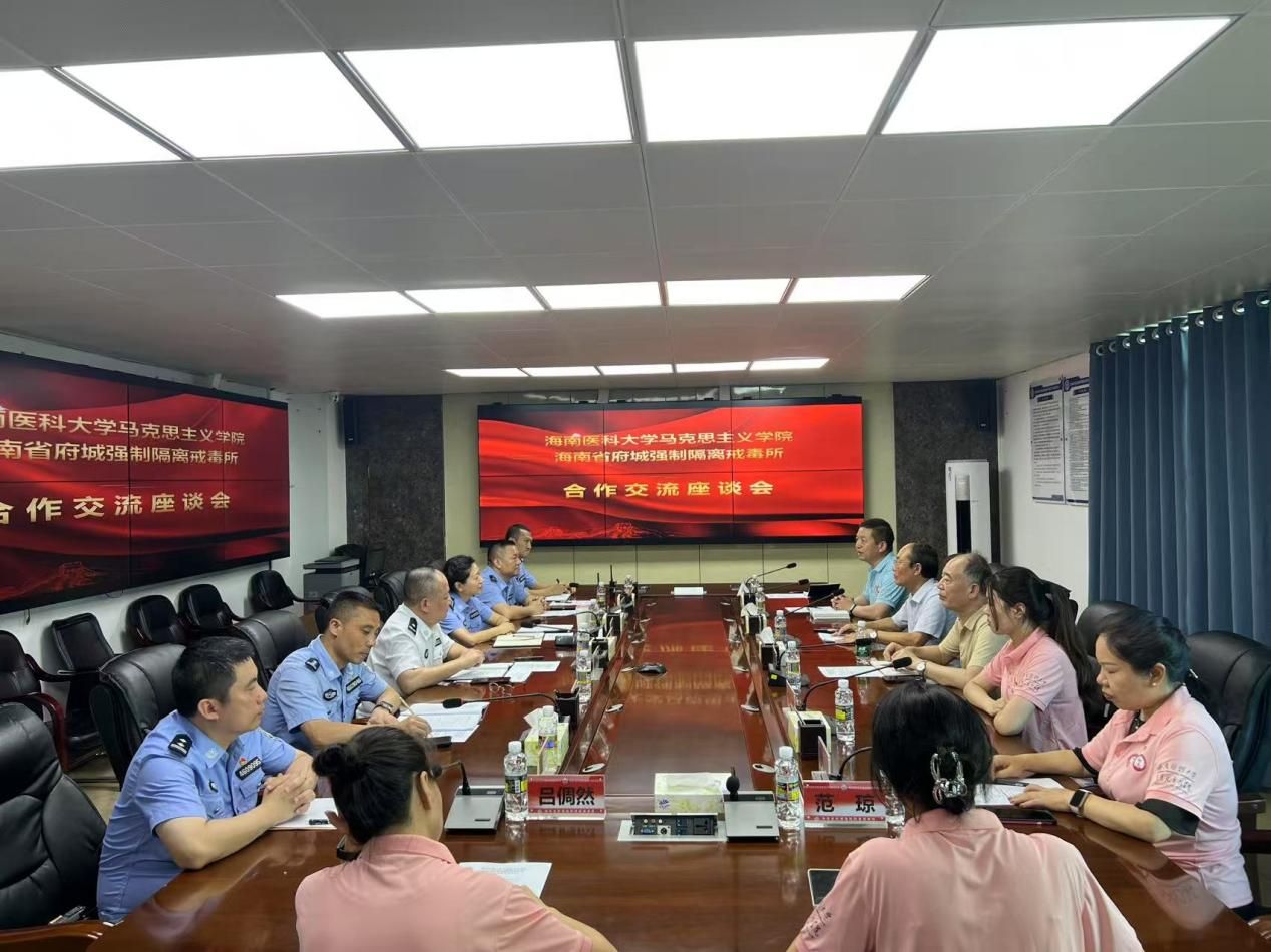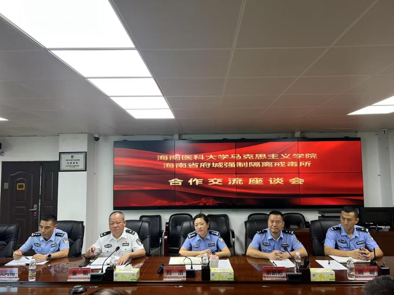 海南省府城强制隔离戒毒所党委副书记、政委金韬对海南医科大学马克思主义学院(人文社会科学部)一行表示热烈欢迎,并感谢学院长期以来的支持,并期待进一步深化务实合作。刘洁副所长在介绍戒毒所基本情况时,特别提到与高校合作开展的教育项目取得良好成效。