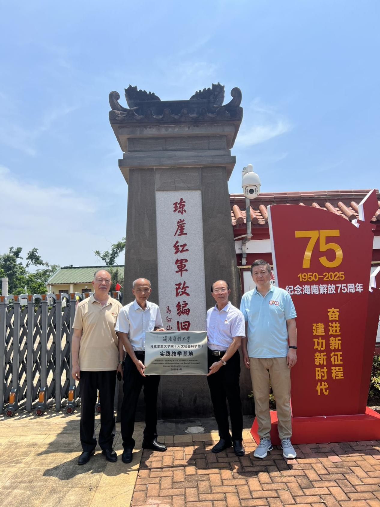 2025年5月9日,海南医科大学马克思主义学院(人文社会科学部)党总支书记王身坚、院长周书俊、副书记黎同柏,及各教研室主任、秘书等一行14人,赴琼崖工农红军云龙改编旧址参观学习,并为海南医科大学马克思主义学院(人文社会科学部)实践教学基地挂牌。