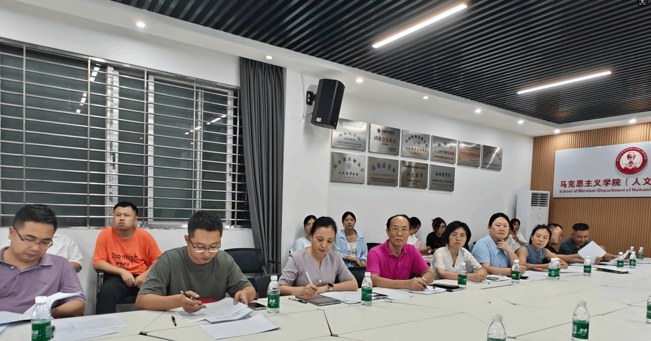 2025年6月15日,马克思主义学院(人文社会科学部)习近平新时代中国特色社会主义思想教研室以“我为海医出点子”为主题,举办实践教学成果展示暨校园治理创新研讨会。活动以 “调研成果转化+师生协同治理”双轨模式,搭建起学生实践创新与学校发展建设的对话平台。马克思主义学院(人文社会科学部)党总支王身坚书记携校工会、教务处、学生工作部、后勤处、武装保卫处、图书档案馆、现代教育技术中心 、体育部8个职能部门负责人与学生代表共话校园治理新路径。