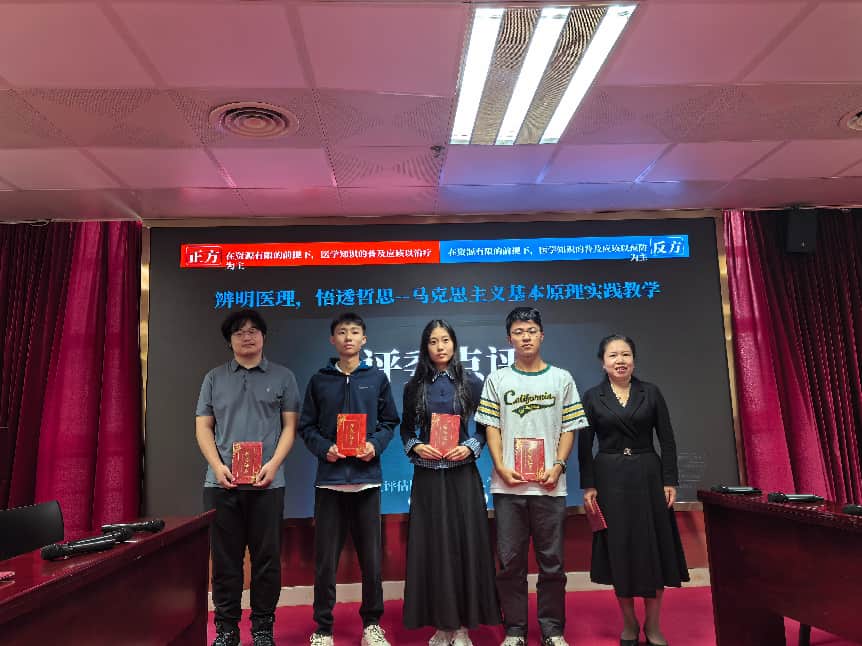 比赛现场高潮迭起,各参赛队伍分工明确、配合默契。立论环节逻辑严密,选手们结合医学专业知识与马克思主义基本原理阐释观点;攻辩阶段针锋相对,双方围绕核心争议点展开精准反驳与深度追问;总结陈词时,辩手们立足辩证唯物主义世界观,对辩论焦点进行升华提炼。学生运用马克思主义基本原理分析专业领域的社会现实问题,既展现了扎实的专业功底,又体现了清晰的辩证思维。经过激烈角逐,评选出一等奖2支队伍、二等奖3支队伍,三等奖5支队伍,最佳辩手5名。