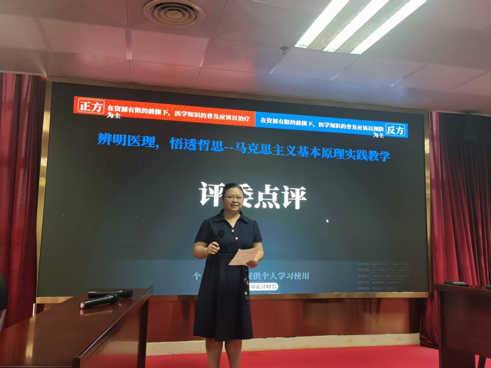 作为马克思主义基本原理课程的实践教学形式,本次辩论赛让学生成为理论学习的主动参与者和积极践行者,参赛选手在备赛过程中查阅文献、研讨案例,将马克思主义基本原理与医学伦理、医疗政策、行业发展等实际问题相结合,实现了理论认知的深化与实践能力的提升。