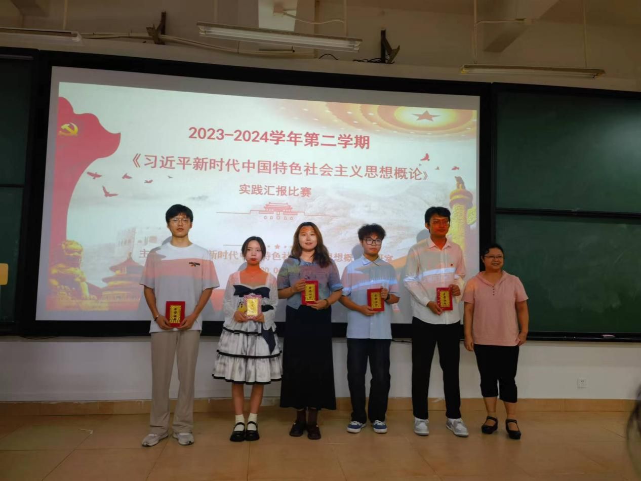 为深入学习贯彻习近平总书记关于思政课建设的重要论述精神,引领学生深切领会新时代中国特色社会主义思想的精髓要义,并将其转化为推进中国式现代化建设的强大动力,2024年6月2日15:00,马克思主义学院(人文社会科学部)习近平新时代中国特色社会主义思想概论课程实践汇报在4-109举行。参加本次实践汇报的25个参赛小组,都经过各班级初赛推选产生,分别来自我校2022级全体本科生班级和2023级专科班级,习近平新时代中国特色社会主义思想概论教研室全体任课教师出席了会议。