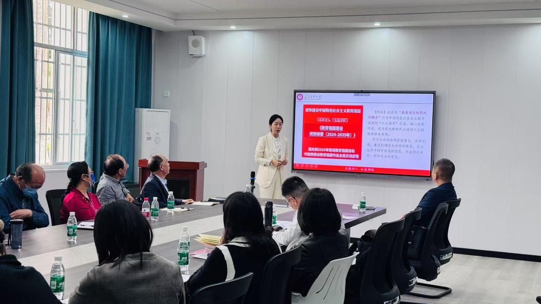 其次,周书俊院长带领全体教师深入学习《教育强国建设规划纲要(2024-2035)》。他通过解读《纲要》的核心内容和重要意义,引导教师们深刻领会其精神实质,并结合学院实际探讨贯彻落实的具体路径。周书俊强调,《纲要》是国家在新时代背景下为推动教育高质量发展、实现教育现代化制定的纲领性文件。结合学院发展具体实际,他着重分析了《纲要》对我校思政课建设的指导意义。他要求教师们将《纲要》精神融入日常教育教学工作中,不断更新迭代教学方法,提高教学水平,增强科学研究能力,以高度的责任感和使命感积极投身于教育强国建设的实践中。