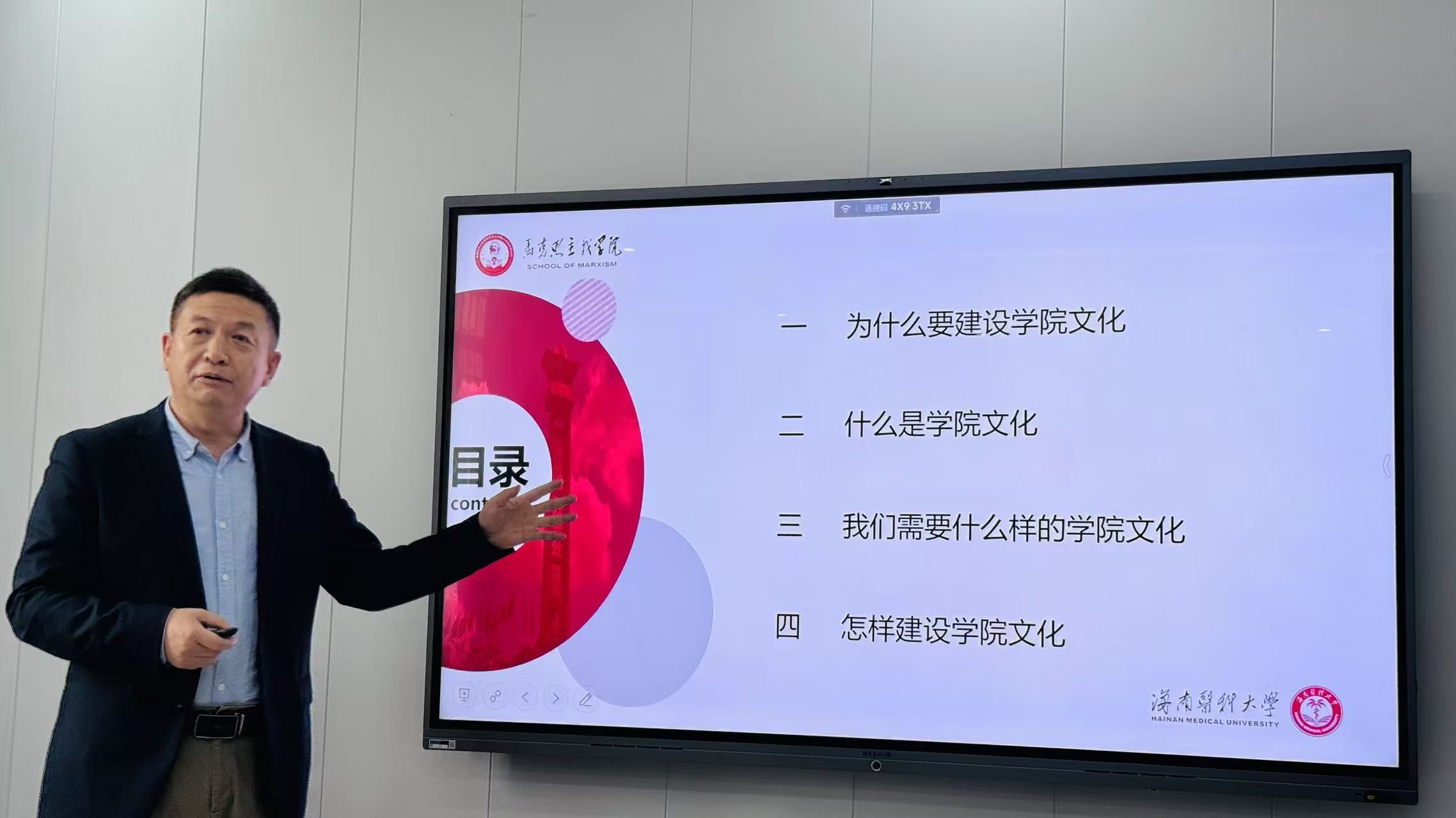2025年2月21日,海南医科大学马克思主义学院(人文社会科学部)在大学生活动中心一楼会议室召开2025年工作务虚会暨第一次例会,主要深入学习习近平总书记的重要文章《健全全面从严治党体系》以及《教育强国建设规划纲要(2024-2035)》文件精神和学校2025年务虚工作会议精神,全面谋划学院2025年工作及制定2024-2025学年春季学期工作计划。会议由学院党总支书记王身坚主持,院长周书俊、副院长邹庆华、副书记黎同柏及学院全体教师参加了此次会议。