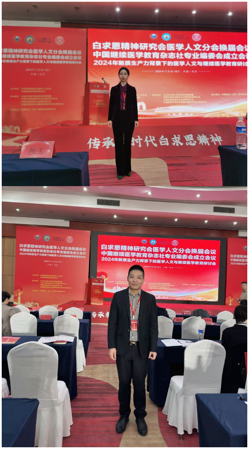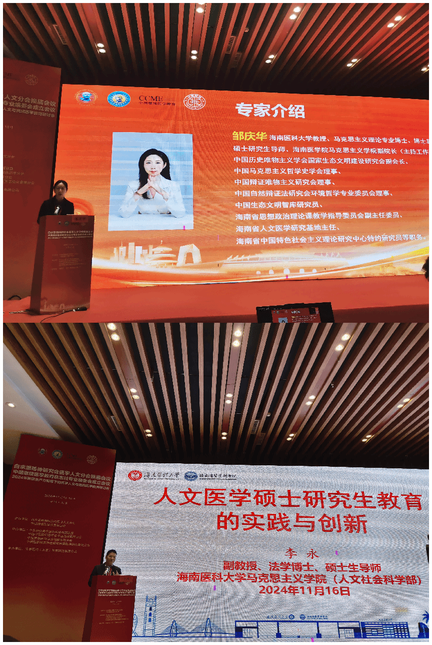 2024年11月15-18日,白求恩精神研究会医学人文分会在北京主办新质生产力背景下的医学人文与继续医学教育研讨会暨白求恩精神研究会医学人文分会换届大会,来自解放军总后勤部、中央军委机关事务管理总局、北京大学、上海交通大学、海南医科大学、首都医科大学、广州医科大学、同济大学等单位约1300余名专家学者以线上和线下方式参加了会议。海南医科大学马克思主义学院副院长邹庆华教授和李永副教授应邀出席会议,并分别当选为白求恩精神研究会医学人文分会常务理事。