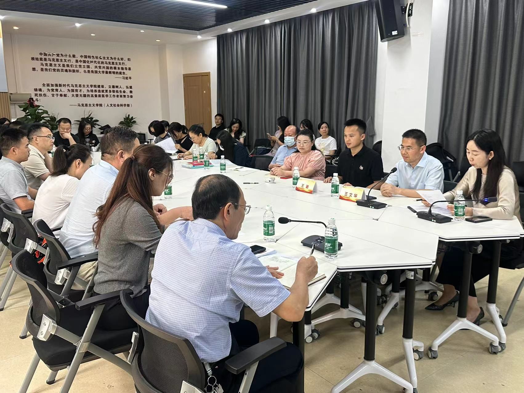 为更好推进大中小学思政教育一体化建设,2024年5月25日下午3时30分,在马克思主义学院(人文社会科学部)学术活动中心,景德镇陶瓷大学马克思主义学院党委书记、院长,江西省哲学学会副会长、江西省高校思政课名师工作室负责人、江西省高水平本科教学(思政课教学型)团队负责人、全国大中小学思政课一体化建设联盟发起人兼秘书长、教育部大中小学思政课一体化共同体(江西省)牵头人王文华教授与王斌老师一行人应邀到我院开展学术交流,分享了对“大中小学思政课一体化协同机制的探索与思考”。学术研讨会由副院长邹庆华教授主持,学院党总支书记王身坚、党总支副书记黎同柏以及马院全体教师参加此次学术交流。