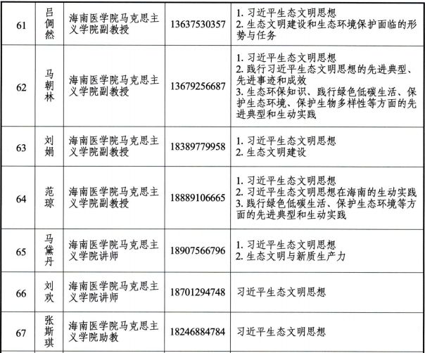 该《通知》一经下发就得到了我院领导班子的高度重视,专门召开了党政联席会议组织、部署宣讲团专家的申报工作;与此同时,该项工作也得到了我院全体教师的热情响应,以党总支书记王身坚、副院长邹庆华为首的我院广大教师结合自身研究专长和宣讲优势积极申报。最后,值得庆贺的是我院参与申报的九名教师悉数获批为海南省习近平生态文明思想宣讲团专家,占我院教师总数的24%。