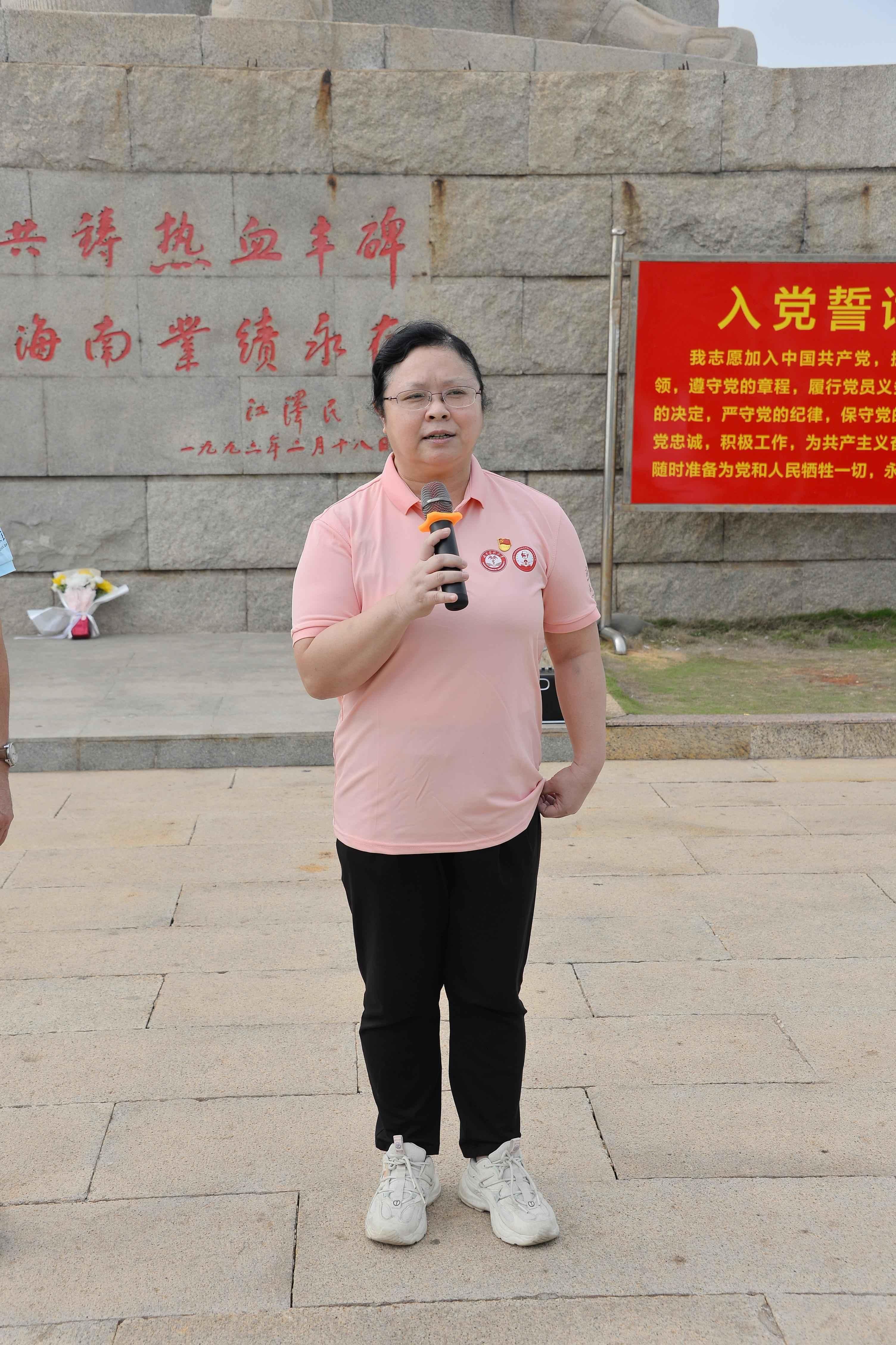 下午,师生转赴临高角解放公园研修。在解放海南临高角登陆纪念馆内,讲解员通过珍贵史料与影像,生动还原1950年解放军以木帆船强渡琼州海峡、创造“小木船战胜铁甲舰”战争奇迹的壮烈历史。随后,全体师生移步“热血丰碑”渡海英雄纪念雕像前,蒋红艳、邓少柳两位教师以生动的语言,带领师生穿越时空,重温“二十三年红旗不倒”的琼崖革命史诗与木帆船破浪强渡的渡海战役壮举。活动中,教师党员面向党旗重温入党誓词,铿锵誓言回荡于纪念碑上空,激荡起赓续红色血脉的使命共鸣。现场还开展了中国近现代史知识有奖竞答,学生踊跃抢答,在问答中围绕东坡文化、海南解放战役、琼崖纵队等主题展开思维碰撞,深化了历史认知。
