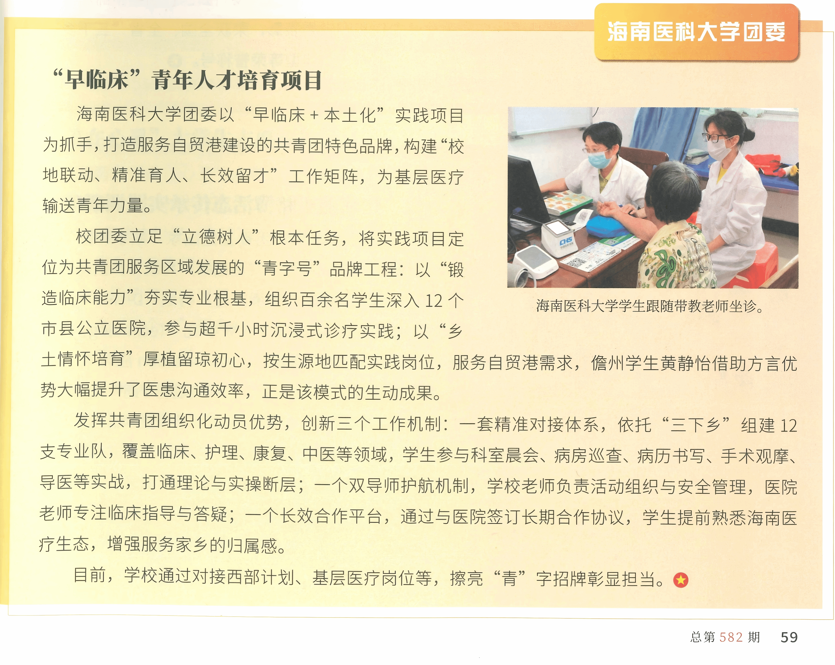 近日,《中国共青团》杂志刊发我校团委撰写的关于“早临床”青年人才培养项目的文章,...