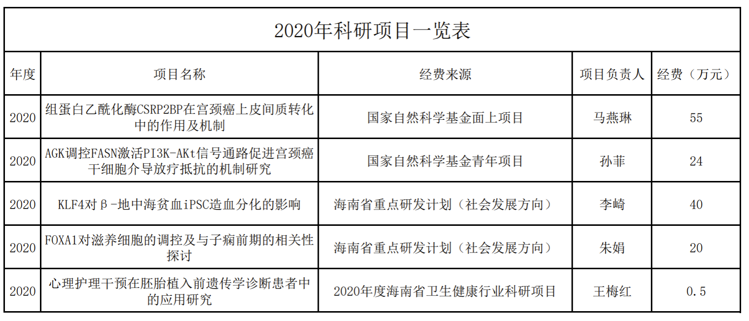 2020年科研项目