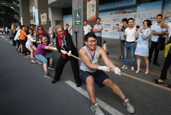 学员与生殖医学中心工作人员举行拔河活动。