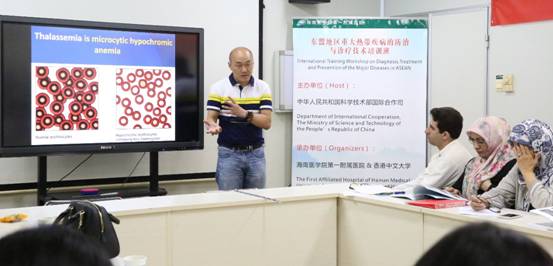 由国家科技部国际合作司主办, 第一附属医院与香港中文大学承办,海南省科技厅协办的“东盟地区重大热带疾病的防治与诊疗技术国际培训班”于2017年10月23日至11月11日在海口成功举办,为期20天。此次培训班共接收了来自缅甸、伊朗等5个国家的18名医生及研究人员,培训课程主要分为六个专题:重大热带疾病尤其是地中海贫血的发病机制、临床和实验室诊断、治疗和预防;常规和最新的细胞遗传和分子遗传技术在产前诊断中的应用;胚胎着床前诊断中单细胞分析技术的介绍和新进展;不孕症诊疗新进展;辅助生殖技术相关遗传风险;基因编辑、干细胞在地中海贫血治疗中的现状和前景以及诱导型多能干细胞和胚胎干细胞培养的最新技术。