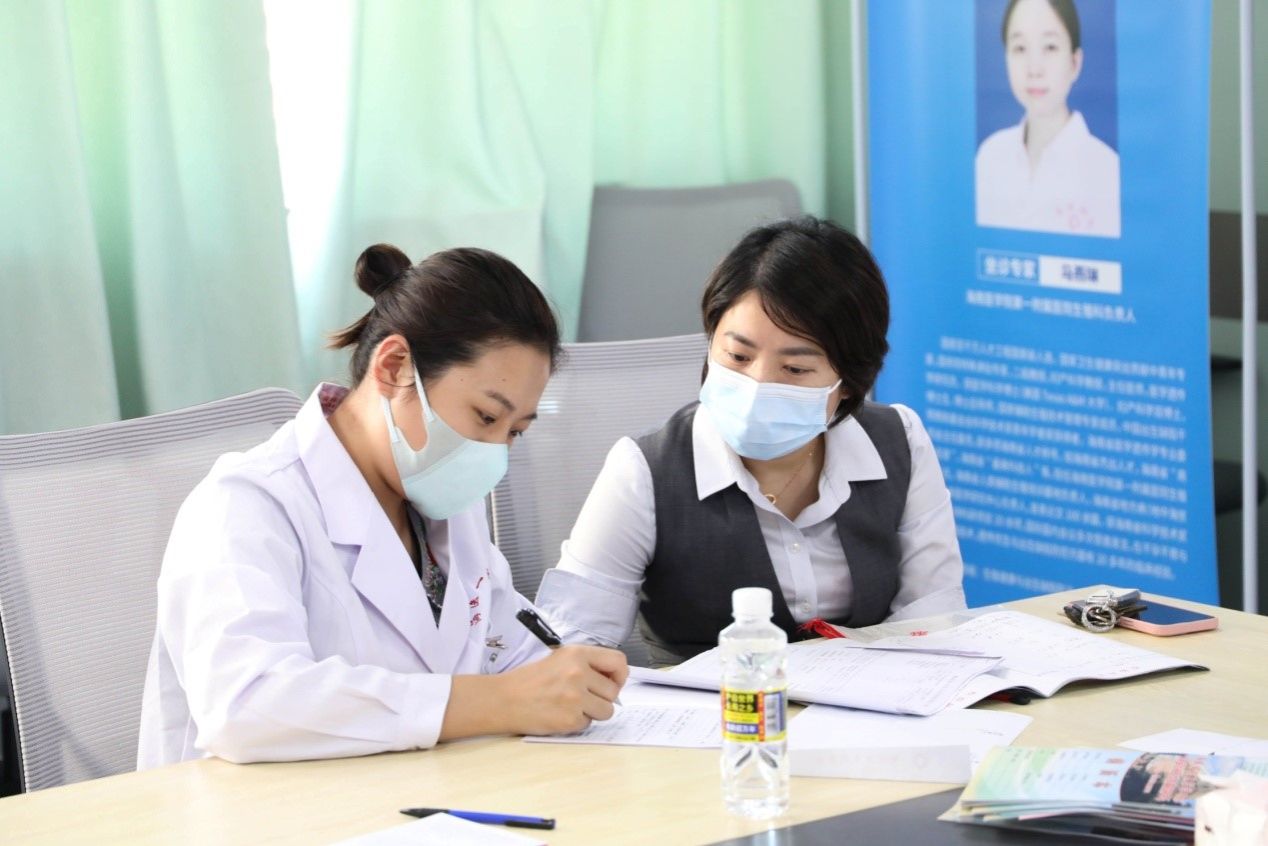 海南西部中心医院生殖科刘萍主任(左)义诊中