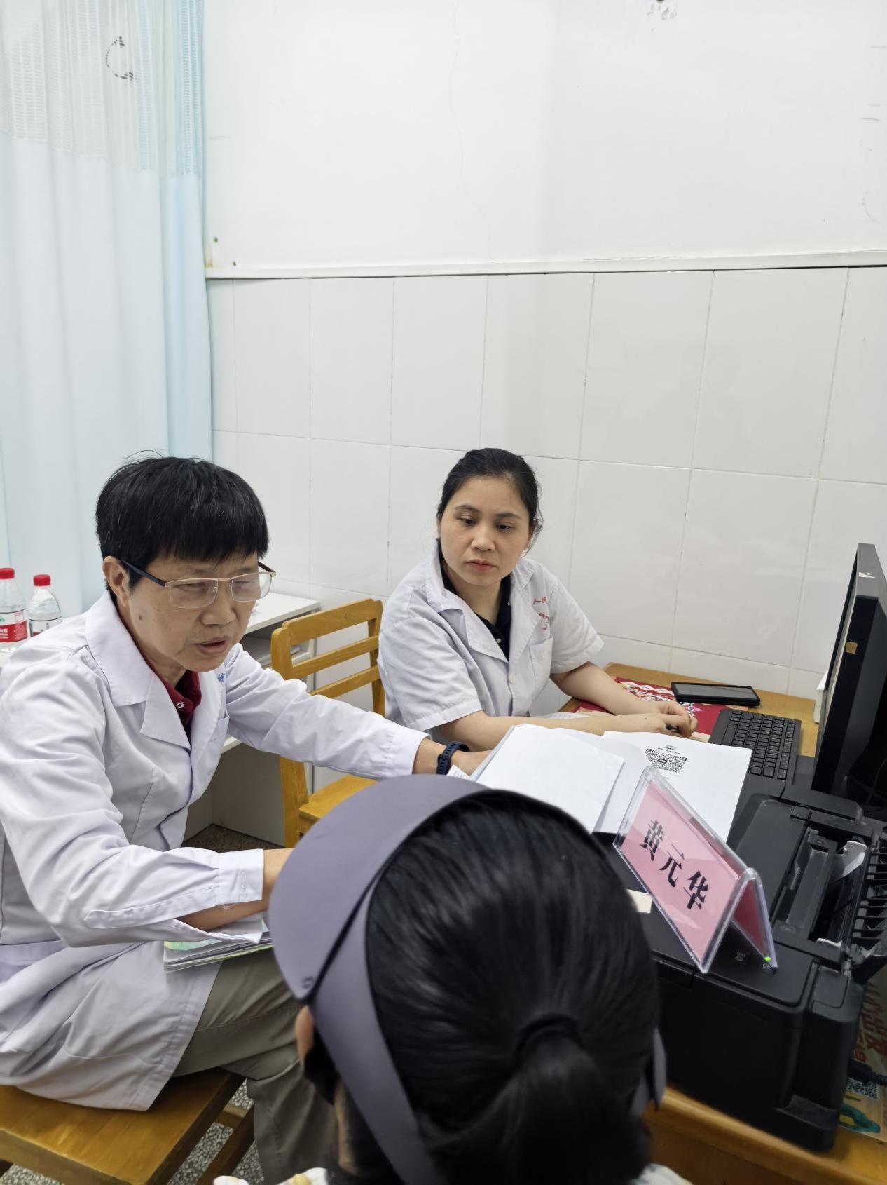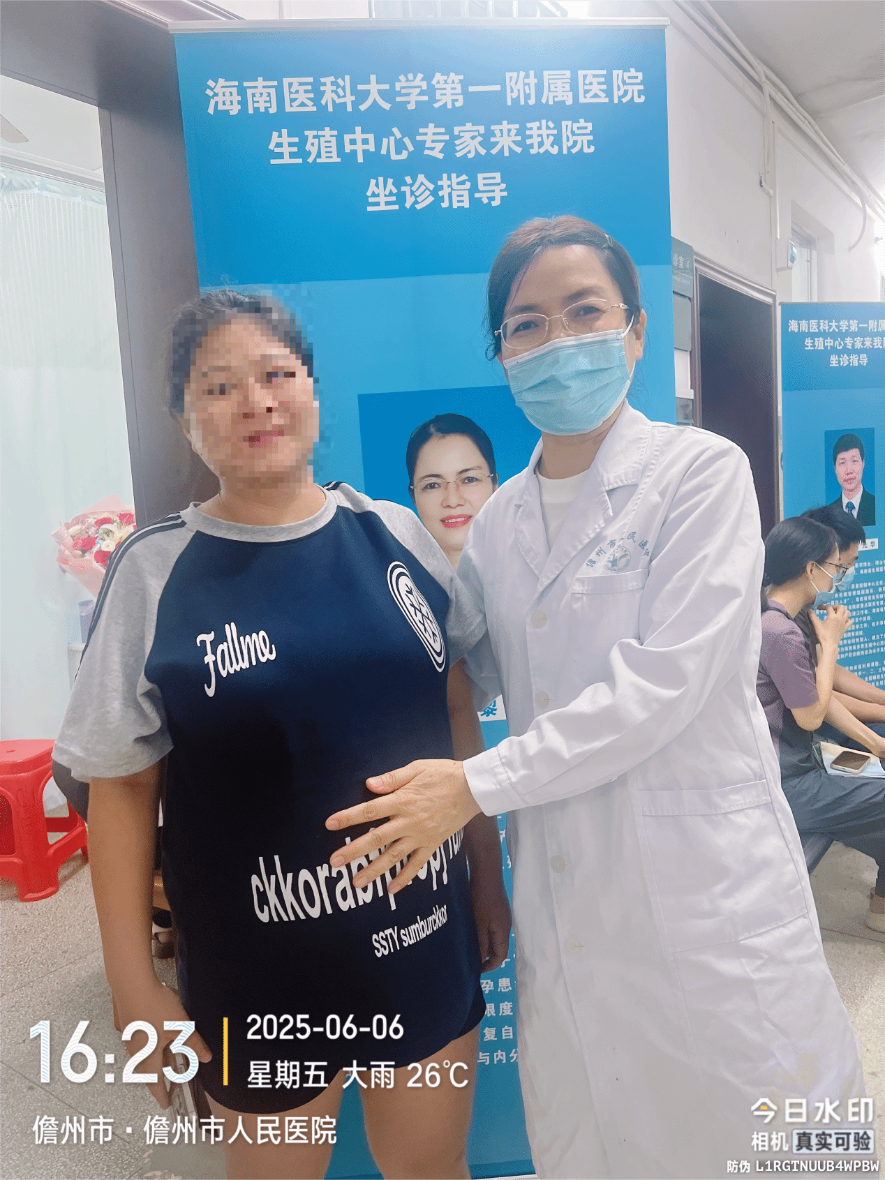 义诊小插曲1:这位因为两次宫外孕术后不孕的病友,2019年开始在外院做试管婴儿助孕,经历了4次取卵,7次移植都没有成功活产,2024年转诊我科黎明鸾主任门诊时已经有点灰心了,经黎明鸾主任的开导又树立起信心,在我科经过长方案促排卵,获卵5枚,获得优质囊胚3枚,新鲜周期移植一次仍未孕,黎主任分析原因发现该病友存在胰岛素抵抗,宫腔镜也提示子宫内膜炎,对症处理后再次解冻移植,这位病友终于成功怀上了,目前已经孕35+周,此次听说黎主任过来义诊,她特意过来与黎主任分享她即将成为母亲的喜悦之情!