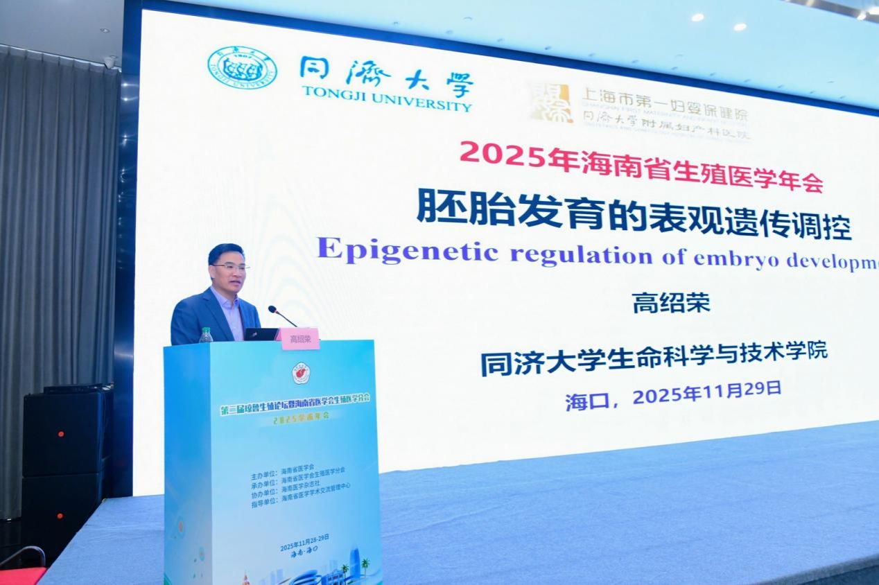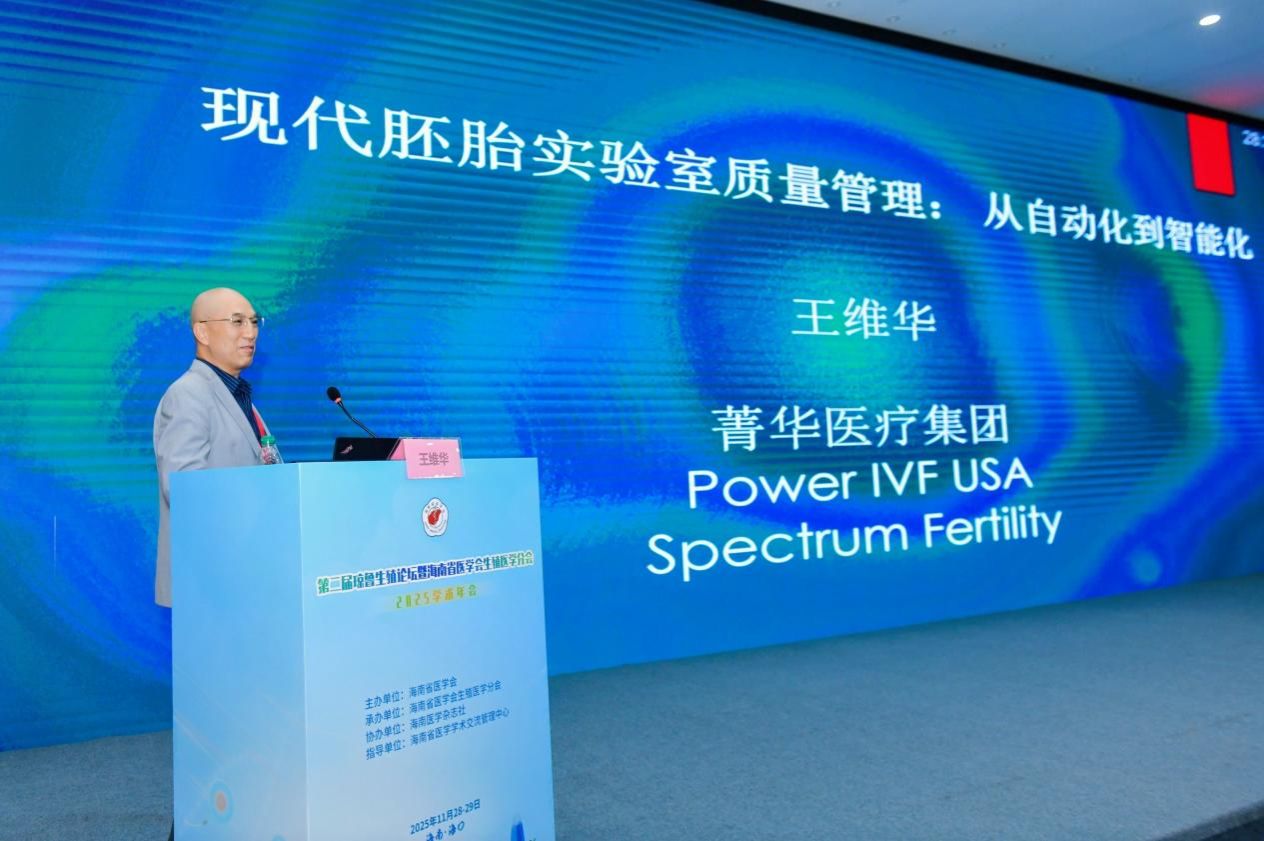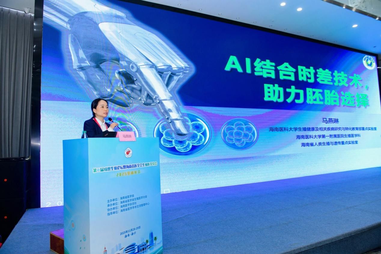 多位业界大咖轮番登场,带来了一场场高水准的学术讲座。中国科学院院士、同济大学生命科学与技术学院院长高绍荣,深入解读“胚胎发育的表观遗传调控”;南京大学医学院附属鼓楼医院生殖主任孙海翔,围绕“胚胎冷冻与子代安全”分享前沿研究成果;山东大学附属生殖医院的陈子江院士虽未能亲临现场,却通过线上形式带来“全球化视野下的PCOS精准健康管理”的精彩分享,其深厚的学术积淀让参会者深受启发;海南医科大学第一附属医院的黄元华教授围绕“辅助生殖技术中女性年龄界限的伦理思考”展开思辨,聚焦临床热点与伦理思考,引发全场共鸣。山东大学附属生殖医院魏代敏教授复旦大学王红艳教授也分别就子宫内膜准备方案、遗传机制防控等议题分享研究成果,内容涵盖生殖医学基础研究、临床应用全方位展现了该领域的最新进展。海南医科大学的何祖平教授解析生殖干细胞分化机制,中国科学技术大学的史庆华教授探究无精子症的遗传基础,来自美国达拉斯Vivere-Dallas  Fertility Laboratory的王维华教授带来“现代胚胎实验室质量管理,从自动化到智能化”的国际视角分享,为国内同行提供了宝贵的借鉴经验。海南医科大学第一附属医院的马燕琳教授关于“AI结合时差技术,助力胚胎选择”的分享,展现了科技赋能医疗的无限可能海南医科大学第二附属医院的李娟教授关于“浅谈原发性闭经的诊治”分享,结合丰富的临床案例,助力提升原发性闭经的诊治水平。