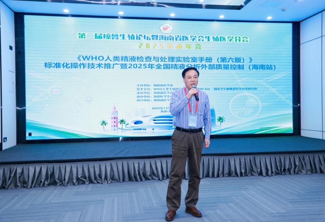 为精进海南省生殖医学核心临床技术,规范人类精液检查与处理实验室手册(第六版)标准化操作技术推广暨2025年全国精液分析外部质量控制,推动海南省生殖健康诊疗水平同质化提升,2025年11月28日,由海南省医学会主办,海南省医学会生殖医学分会、海南医科大学第一附属医院承办的精液检查培训实操班在海口完美举办。本次实操班汇聚省内生殖医学相关专业教授与一线临床骨干,及其实验室人员齐聚一堂,通过专题授课、实操演示、手把手带教等多元形式,为参会者搭建了一个高效务实的学习交流平台。我们邀请到了国家卫生健康委科研所/WHO人类生殖研究合作中心人类精子库卢文红教授,国家卫生健康委员会科学技术研究所/WHO人类生殖研究合作中心谷翊群教授,海南海南医科大学第一附属医院黄元华教授,海南医科大学第一附属医院马燕琳教授,海南菁华生殖妇产医院许蓬教授,国家卫健委科研所/WHO人类生殖研究合作中心周芳教授,海南医科大学第一附属医院张凌霄教授,海南医科大学第一附属医院张宇教授,海南医科大学第二附属医院黄勇教授,现代妇女儿童医院韦月颜教授。及精子培训班人员齐聚一堂,共同参与这场聚焦精液检查技术提升的专业培训。