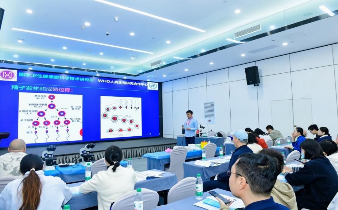 开幕式后,精子培训班进入核心的专题讲座环节,围绕WHO人类精液检查与处理实验室手册(第六版)标准化技术推广展开授课。从谷翊群教授带来的“精子超微结构与分子损伤检测和处理”宏观解读,到卢文红教授对“WHO6版手册概述与精液检查质量控制”的细致剖析;从许蓬教授分享的男性无精症基础诊疗建议与ART策略,到周芳教授关于“WHO5/6版手册精子形态与精子形态学异常的基因遗传病的遗传学因素探讨”的深度讲解,每一堂课都紧扣临床实际需求。此外,张凌霄教授分析的“人工智能与自动化在精液分析中的应用与挑战”精彩内容,覆盖了精液检查技术的多个关键维度,既有理论高度,又有实践指导意义。