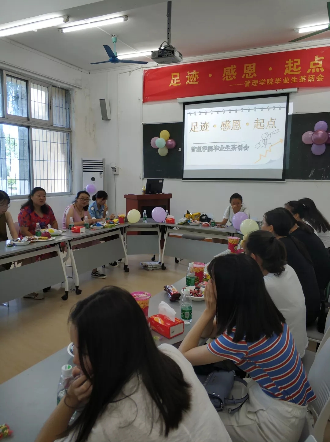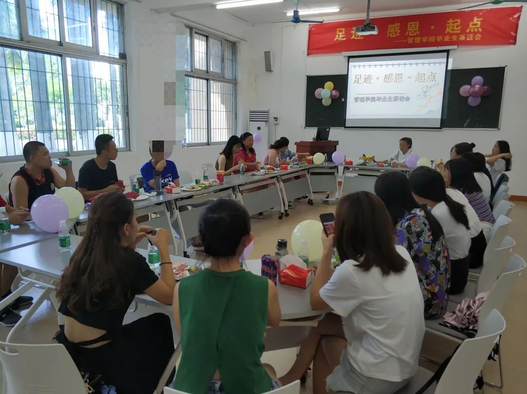 管理学院2015届毕业学子的青春往事被再次提起。2015年9月至2019年6月,四年的时光,这1400多个日夜,2016000分钟,120960000秒,都是奋进蜕变的经历。在这离别之际,毕业生们举办了以“足迹·感恩·起点”为主题的欢送会和茶话会。