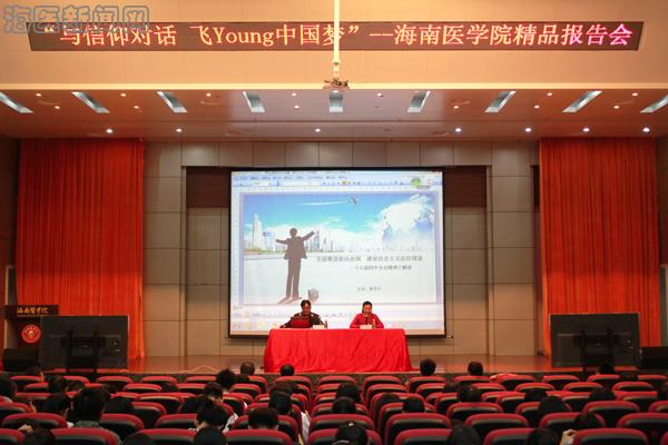 精品报告会于晚上7:30在我校国际报告厅举行。本次报告会主要解读了十八届四中全会精神,报告会由海南大学法学院刑法学科带头人童伟华教授主讲,校团委符琬聆书记主持。我校各级团学干部与700余名团员青年代表共同聆听了报告会。
