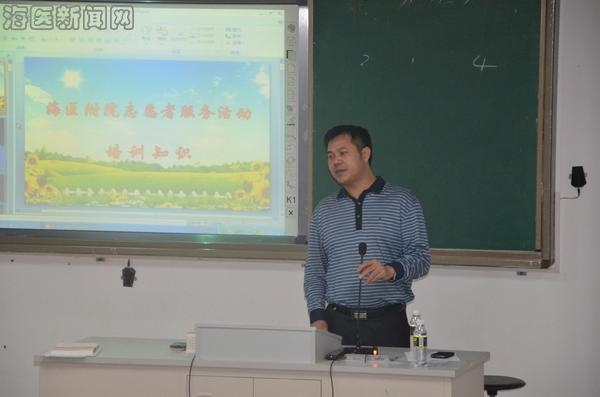 为了让同学们能够成为一名合格的导医志愿者,临床学院青年志愿者协会于11月15日晚19:00在2-301举办了海医附院导医志愿者培训讲座。附属医院医技党总支书记、门诊部副主任林书安,团委书记王爱、副书记黎海江,后勤科韩斌老师莅临现场对志愿者培训。