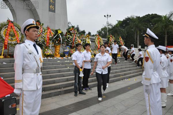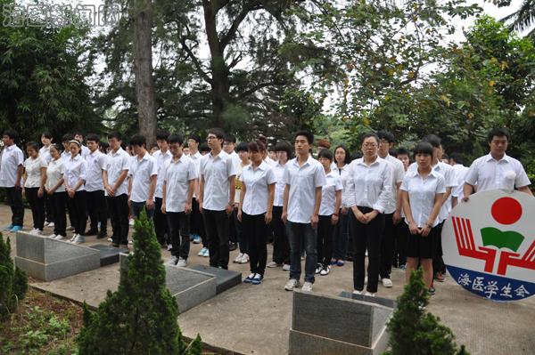 清明节是中国的传统节日,为踏访烈士的英勇足迹,缅怀前辈激情燃烧的岁月,感受英雄的革命激情,激发青年党员、团员的爱国热情。4月5日,在校团委组织下,我校学生会、国旗护卫队以及二级院系学生代表近百名学生到海口市金牛岭烈士纪念碑前举行了以“缅怀革命先烈,弘扬爱国精神”为主题的清明节烈士陵园扫墓活动。