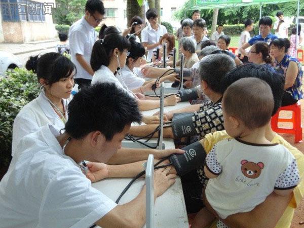 第八届大学联合义诊活动在海口市金盘创业新村社区顺利举行。本次义诊活动的主题是“弘扬医学知识 传递爱心健康”,校学工部王长福老师、海南省边防总队医院医护人员、校学生会医学实践部、校针灸推拿协会等四十余名志愿者参加了此次活动,接诊200余人。