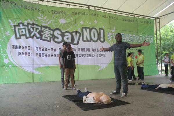 6月22日,“向灾害SAY NO!——5•12全国减防灾校园活动”在我校风雨操场举行。当天上午,在海南省红十字会、海南省地震局、海南省志愿者协会与我校红十字会的联合指导下,由校团委、海口市公安消防支队金盘中队协办,近200名学子和教职工家属共同举行应急技能比拼、密集居住区消防安全等演练。