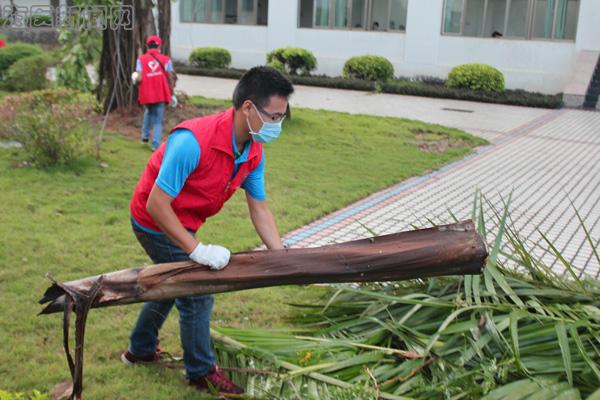 9月17日下午17:30,我校200名志愿者放学后迅速在医学卷轴集中,在校团委的组织下,在珠江物业公司的指导下,开展了“洁净校园”志愿服务行动。志愿者们分布在教学区、宿舍区、职工生活区,将散落的树枝及其他垃圾集中、归放整齐,为清洁人员第二天的清理提供便利。