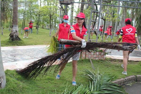 强台风“海鸥”袭击我省后,让我校及周边景区失去了往日的美丽。为了让家园更加美丽,我校志愿者在台风后迅速行动起来,开展“爱护家园 我们在行动”志愿服务活动。